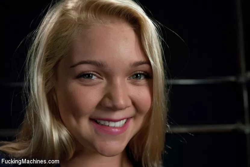 18-летняя блондинка мастурбирует, пока ее трахает секс-машина