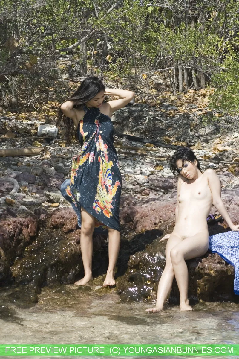 3 Японские лесбиянки снимают купальники, проводя день у проруби для купания