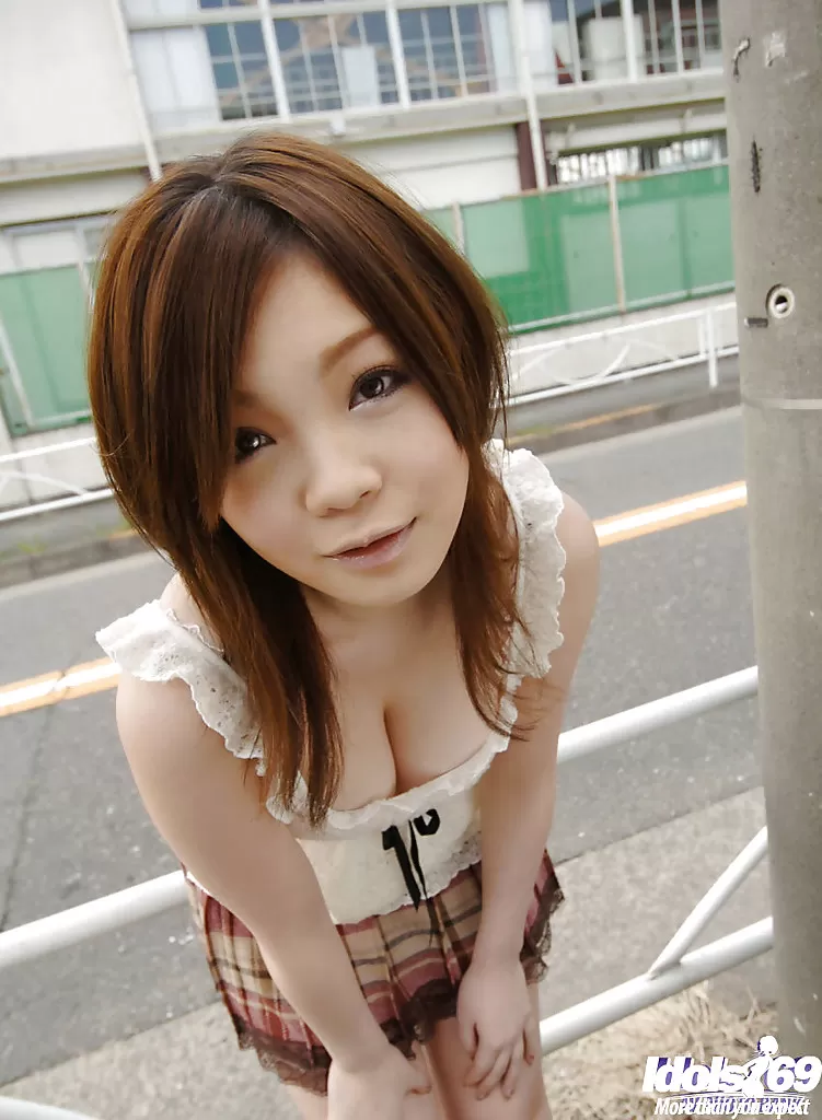 Азиатская школьница Нами Огава обнажает свою массивную грудь и красивую попку