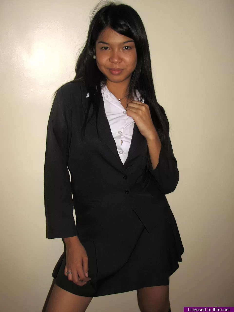 Азиатская школьница снимает хлопчатобумажное нижнее белье и позирует обнаженной в черных носках