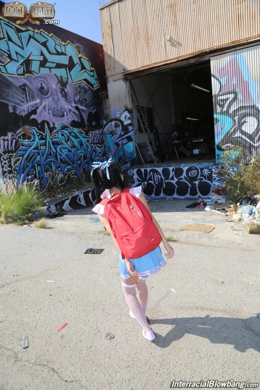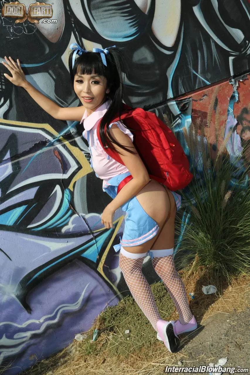 Азиатская шлюха пьет сперму из миски после того, как ее трахнули черные мужчины
