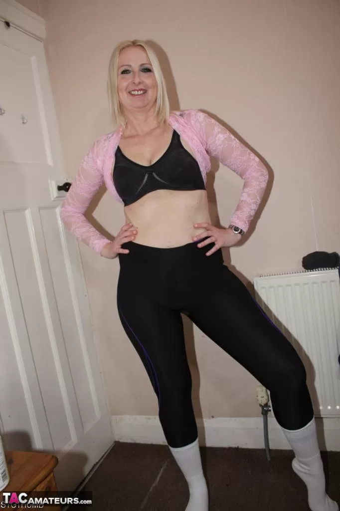 Белокурая британка Трейси Лейн раздевается до белых носков перед трахом от первого лица