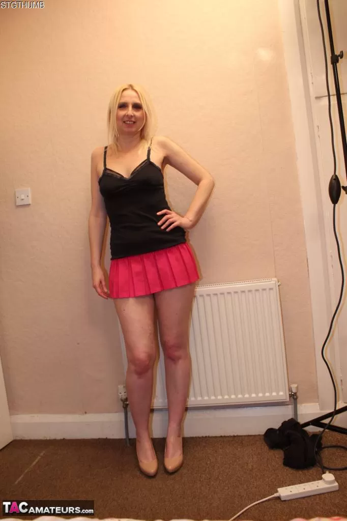 Блондинка-любительница Трейси Лейн отодвигает хлопчатобумажные трусики в сторону для анального секса