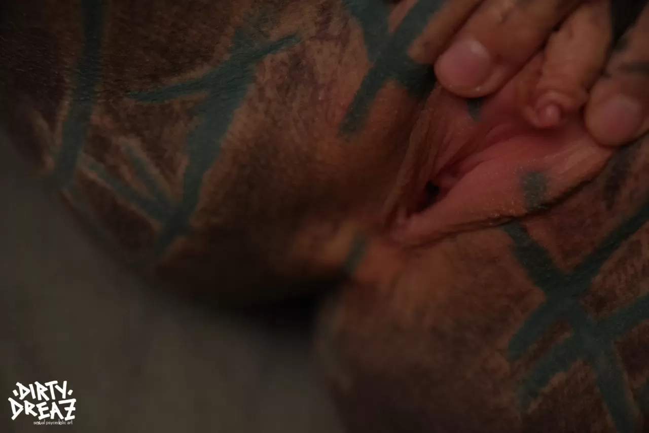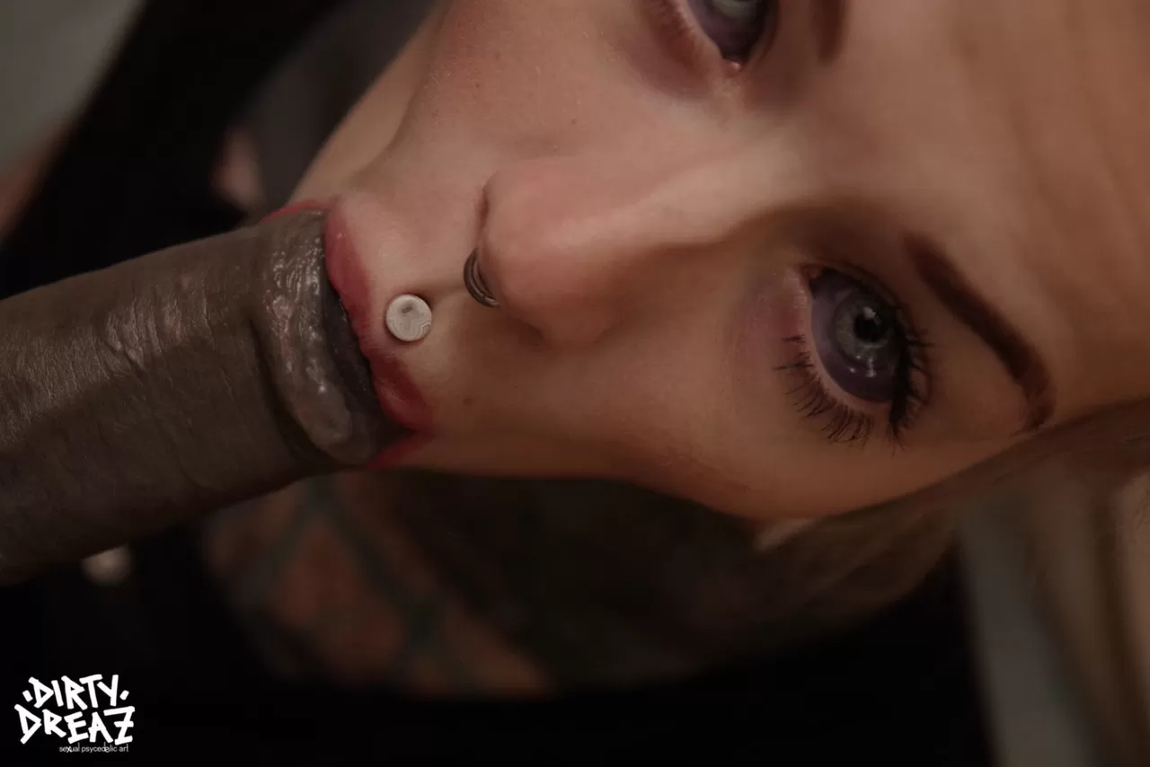 Блондинка с модификатором тела играет со своей киской после межрасового минета