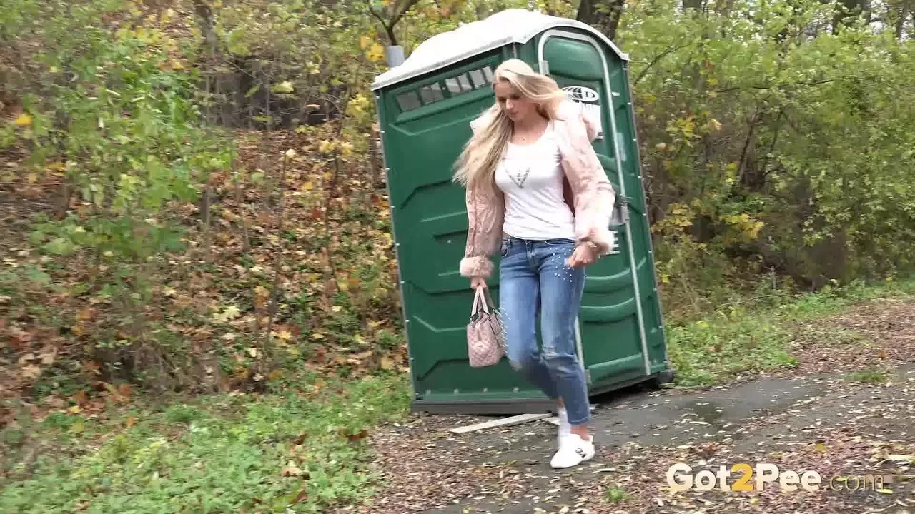 Блондинке Кэти Скай приходится сбросить джинсы и пописать на публике из-за запертого туалета