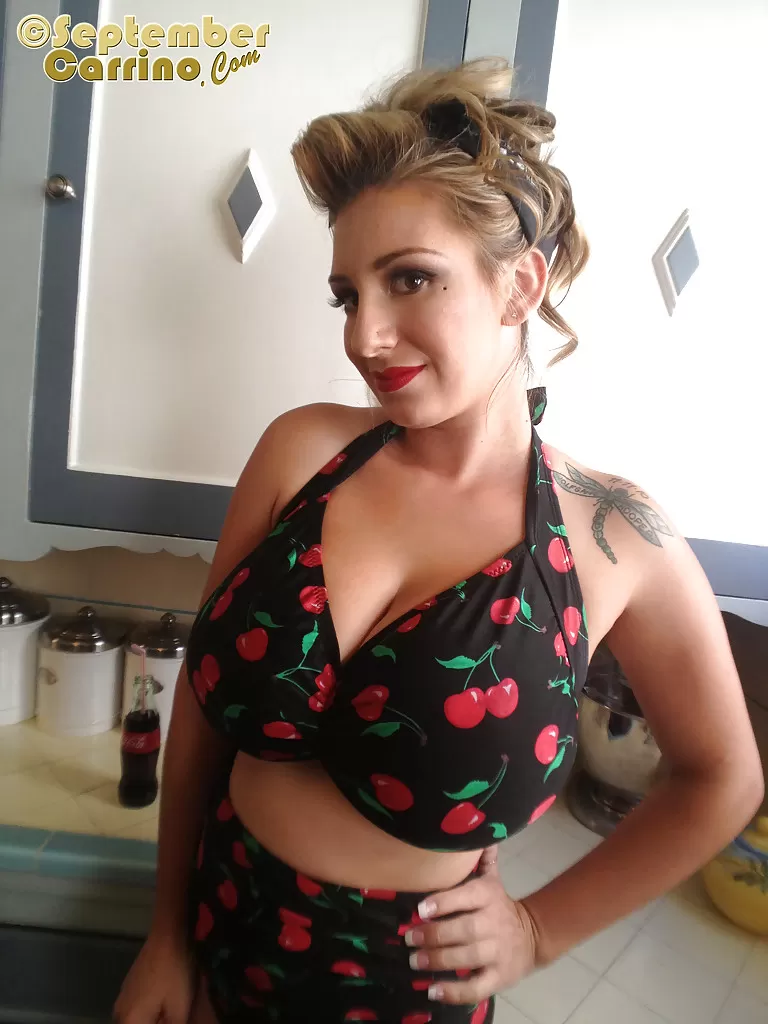 Большегрудая блондинка Сентябрь Каррино демонстрирует свое подтянутое тело