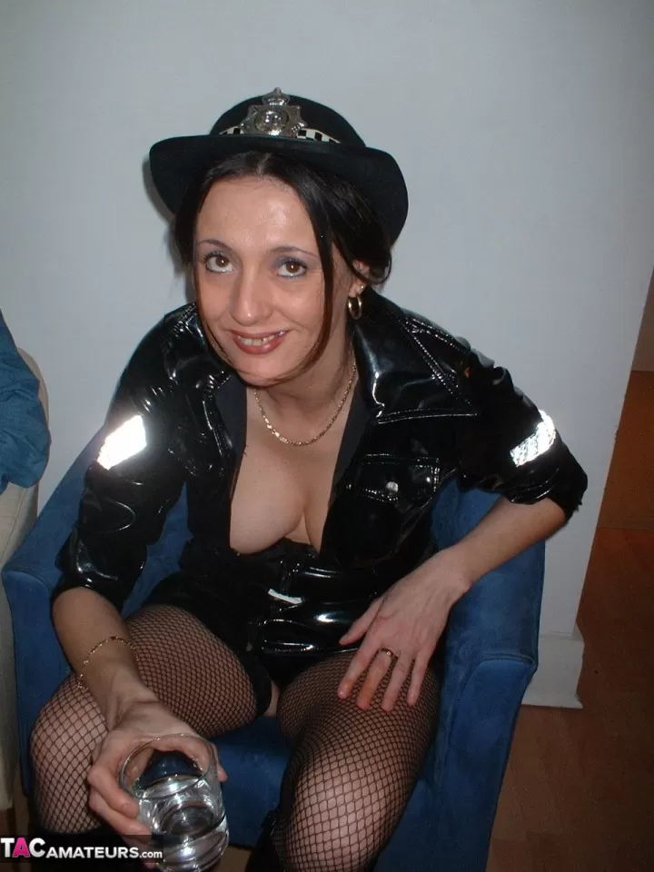 Британская любительница Джуси Джо отсасывает белые и черные члены в латексной полицейской одежде