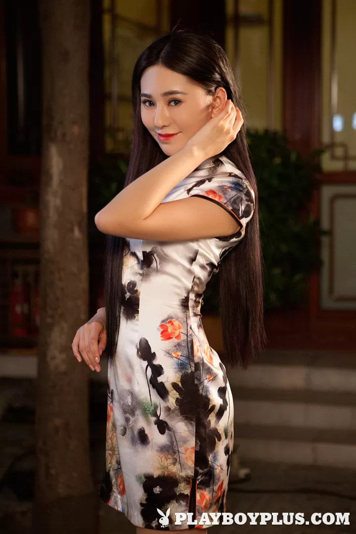 Брюнетка азиатка Ву Мукси снимает короткое платье, чтобы позировать голой с красивой попкой и сиськами