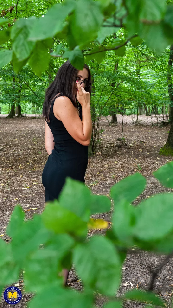 Брюнетка надевает очки во время секса от первого лица в чулочно-носочных изделиях и подвязках