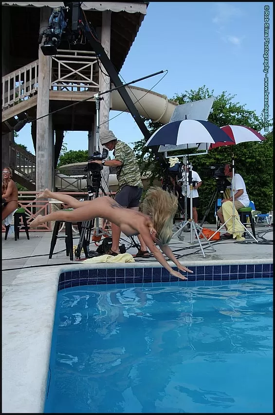 Девушки-лесбиянки купаются нагишом после игры в покер на раздевание у бассейна