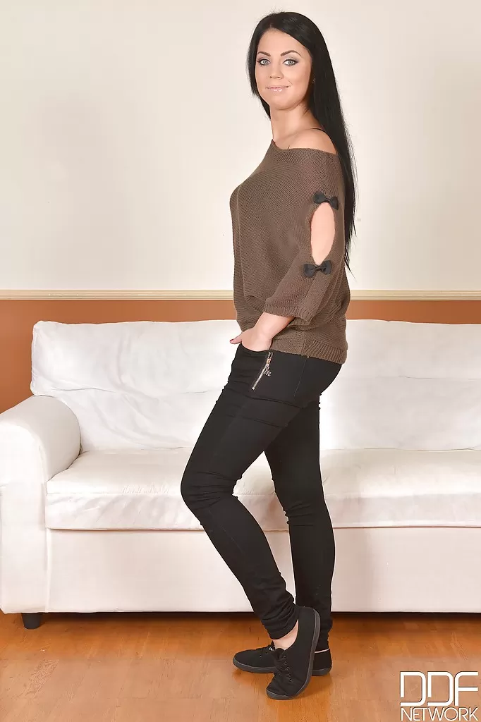 Длинноногая европейская красотка Сьюзи Фокс демонстрирует сексуальные босые ножки после снятия джинсов
