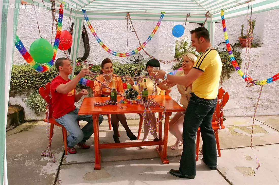 Дружеская вечеринка в саду превращается в бесплатный для всех трах-фест на открытом воздухе