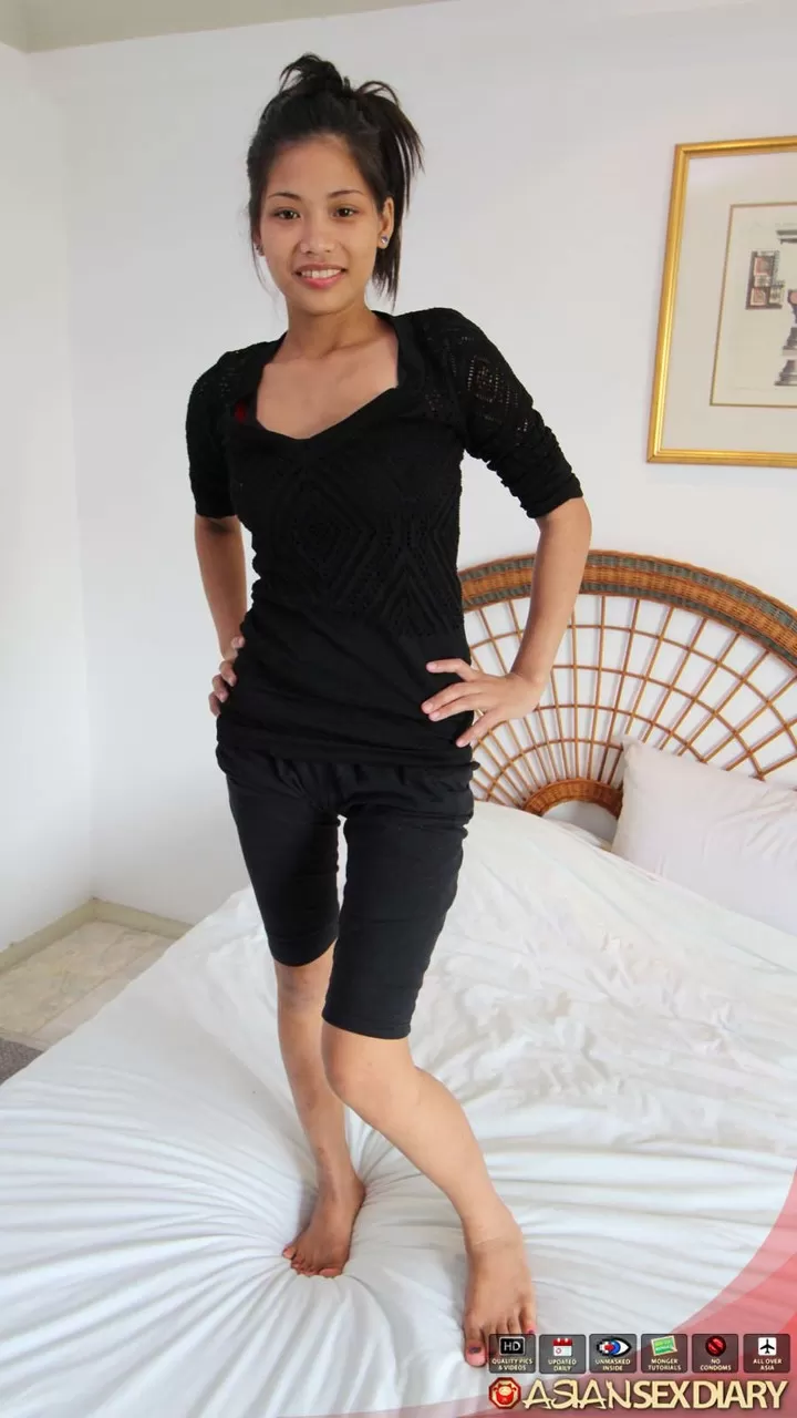 Филиппинская мамаша раздевается перед тем, как дрочить и трахать фаранга