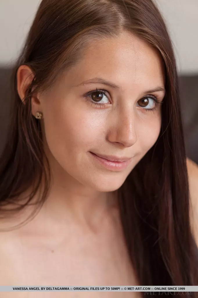 Горячая худышка Ванесса Энджел показывает свою маленькую грудь и сексуальную киску крупным планом