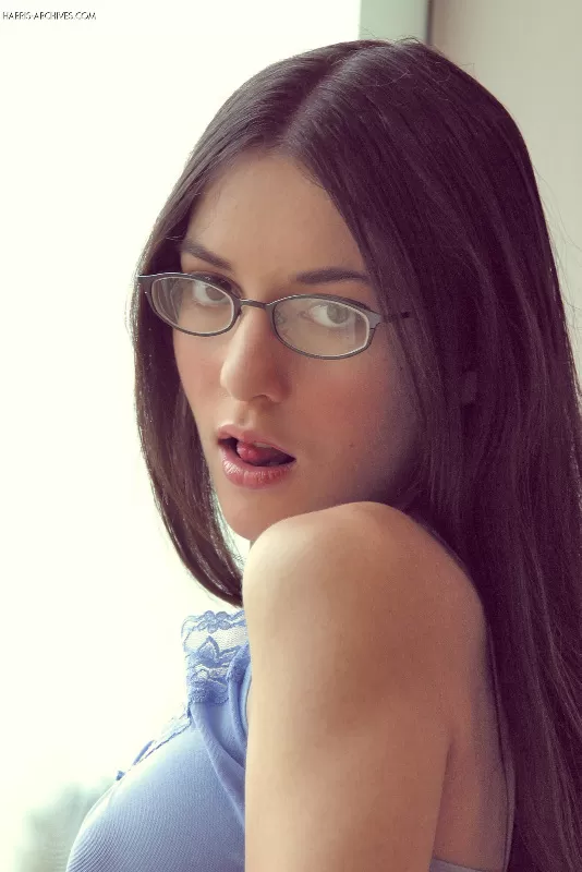 Горячая Лариса Фокс в очках приподнимает рубашку, чтобы покурить, обнажая маленькие упругие сиськи