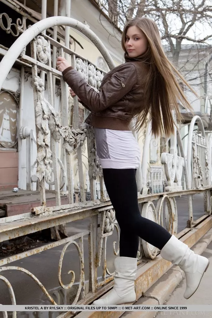 Горячая стройная девушка с крошечными сиськами Кристель раздвигает свою волосатую розовую щелочку