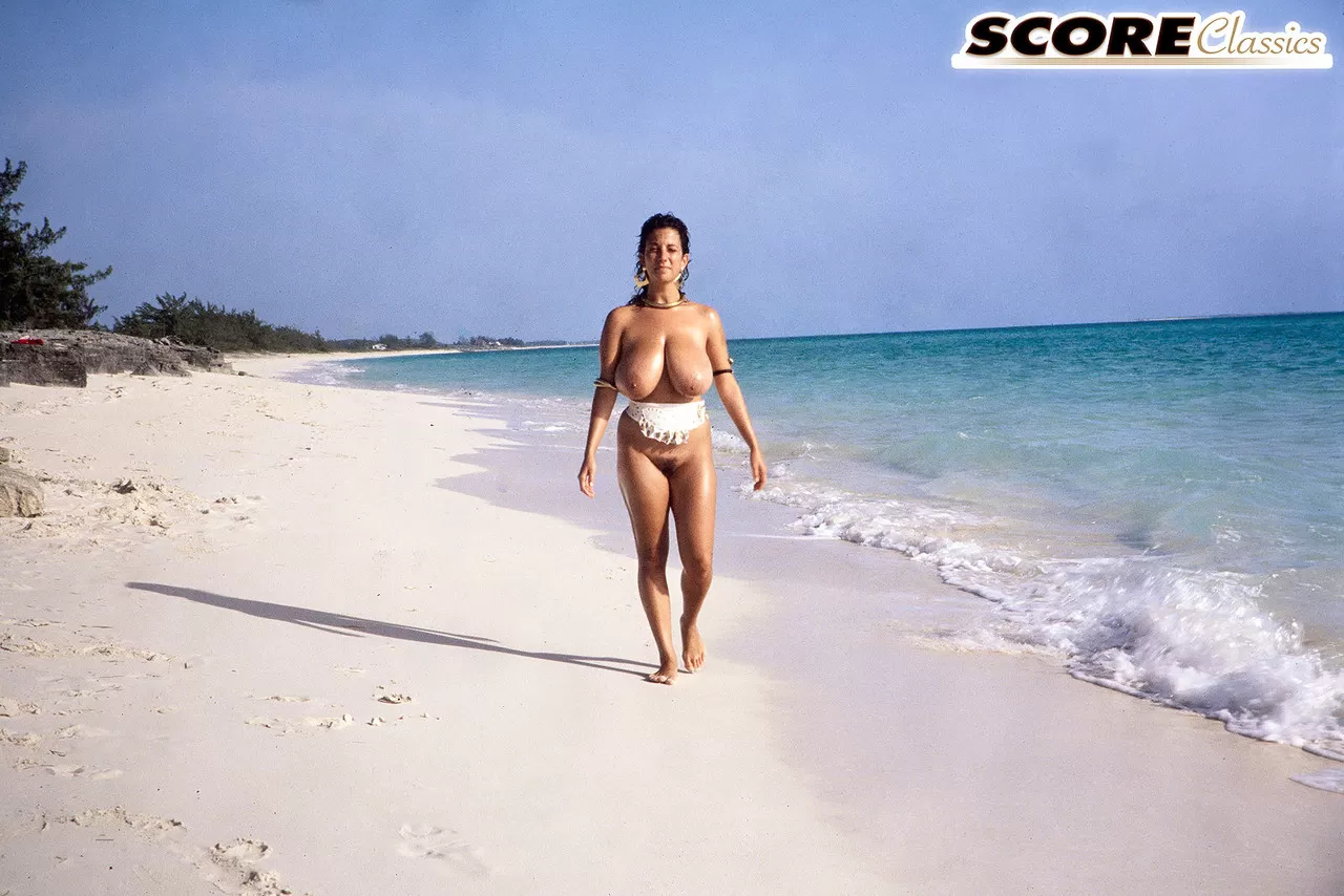 Грудастая милфа Девон Дэниелс засыпает свои массивные дыни песком на пляже