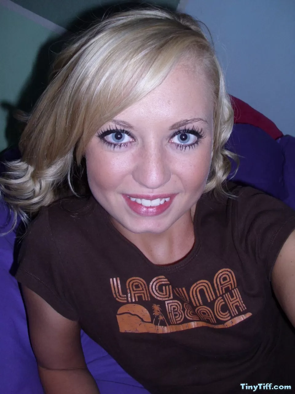 Грязная блондинка-любительница Крошечной размолвки делает селфи своей влажной киски