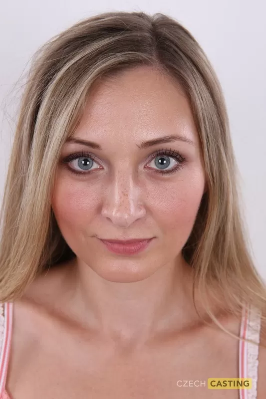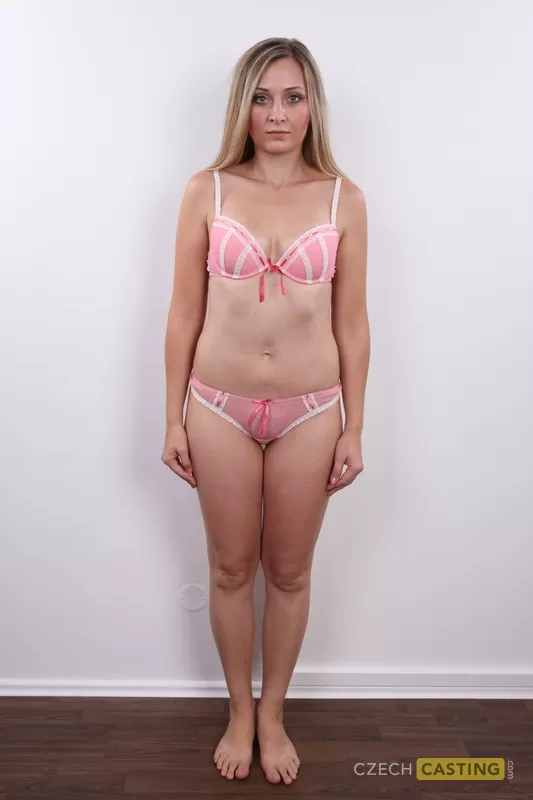 Грязная блондинка-первокурсница Ханка стоит совершенно голая после того, как разделась