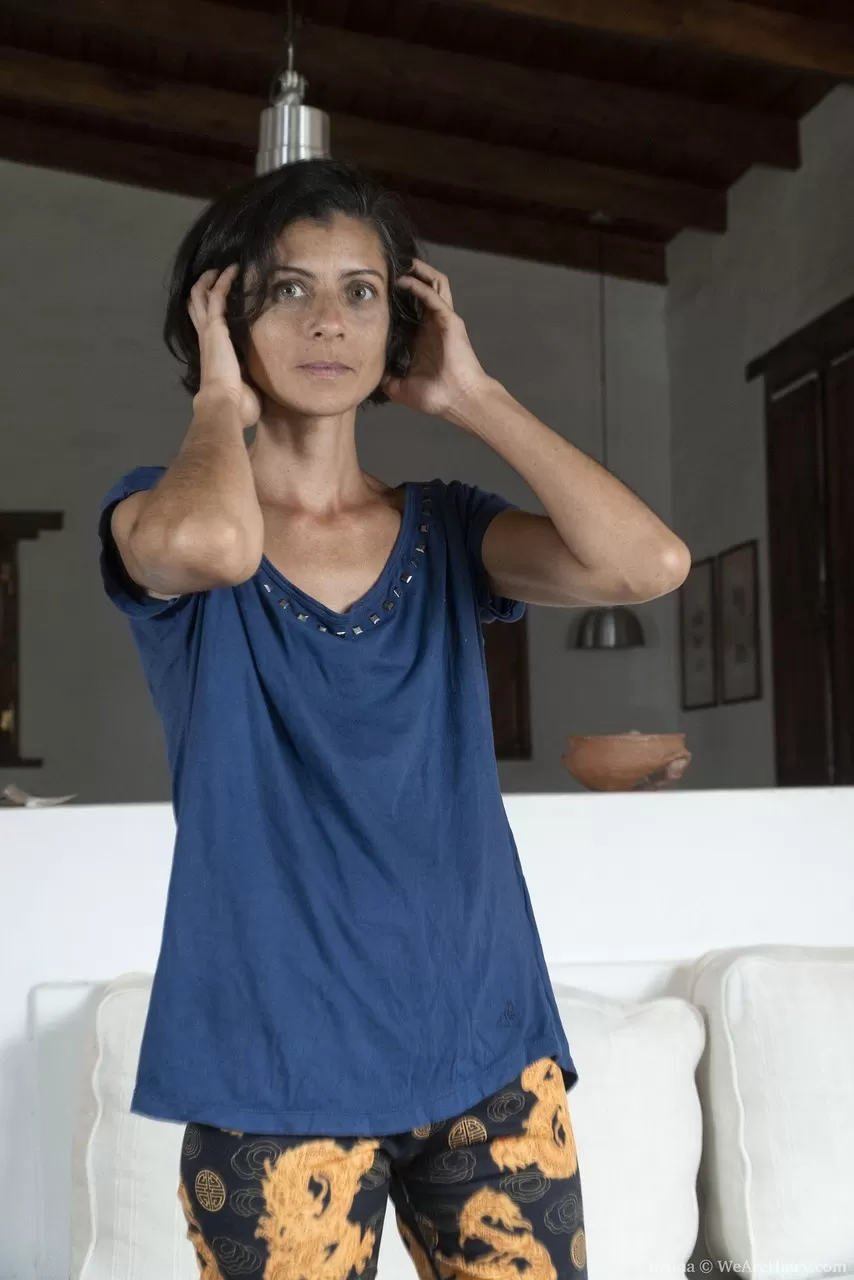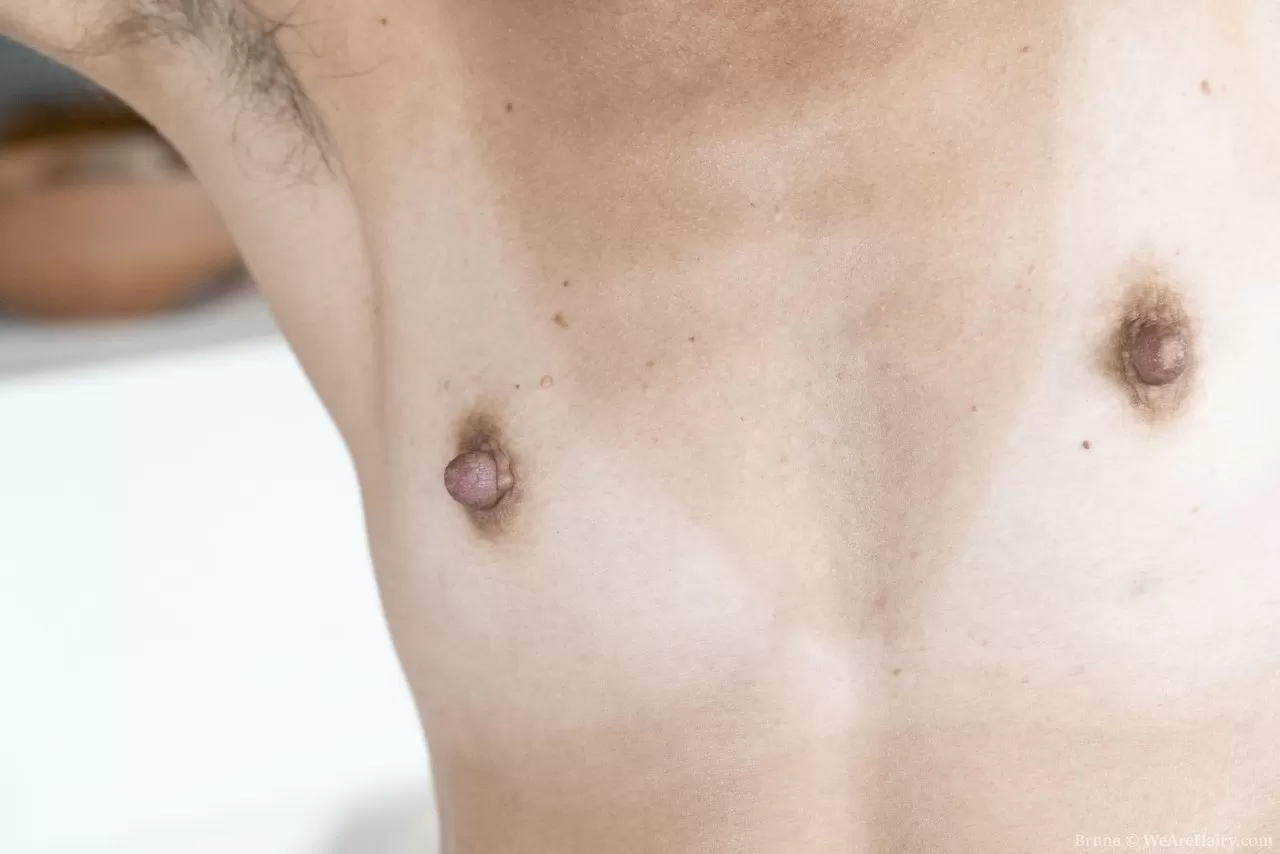 Худая зрелая женщина Бруна демонстрирует свое волосатое тело в обнаженном виде