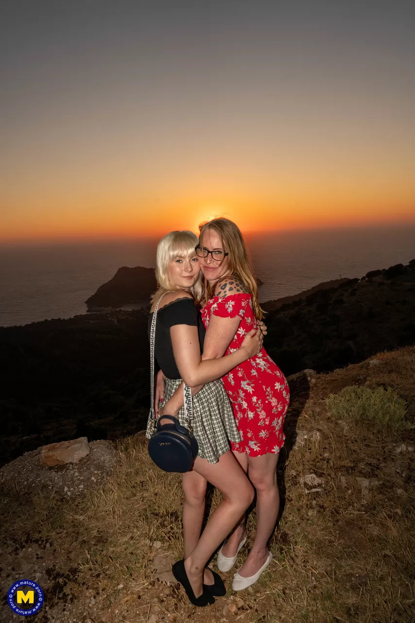 Женщины постарше и помоложе открывают для себя радости лесбийского секса во время поездки на пляж