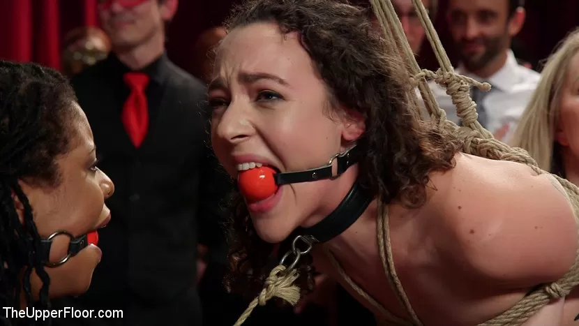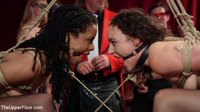 Женщины-секс-рабыни совершают интимные половые акты во время вечеринки для взрослых