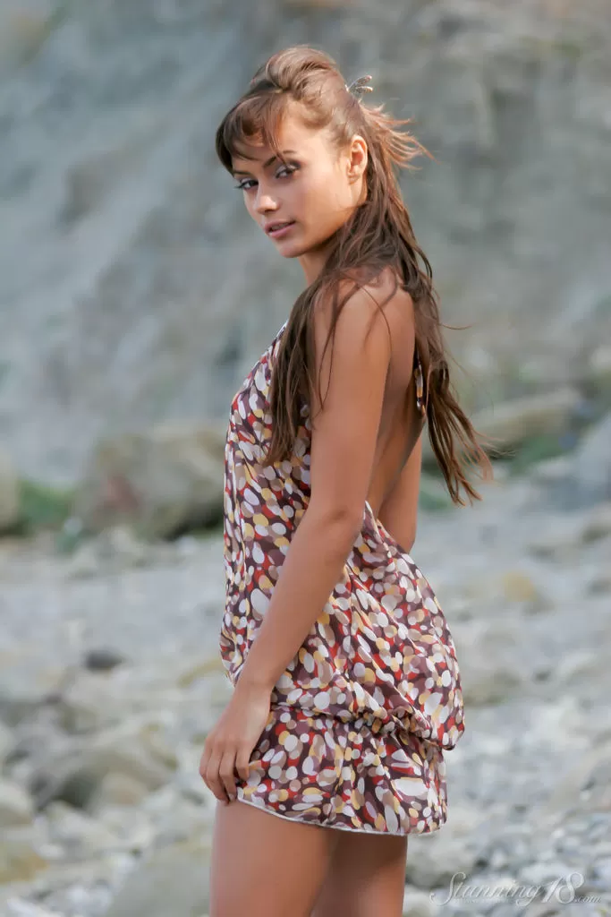 Красивая 18-летняя Элени П. раздевается догола в воде на скалистом берегу