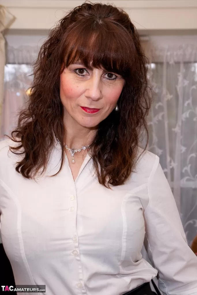 Красивая грудастая зрелая женщина раздевается в офисе, чтобы показать идеальные большие сиськи