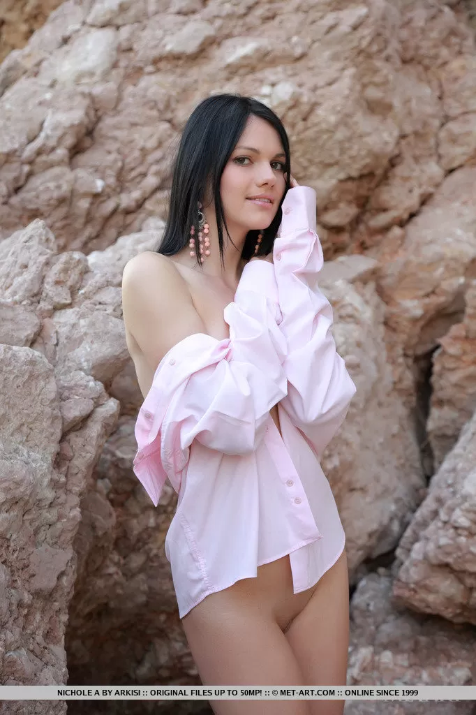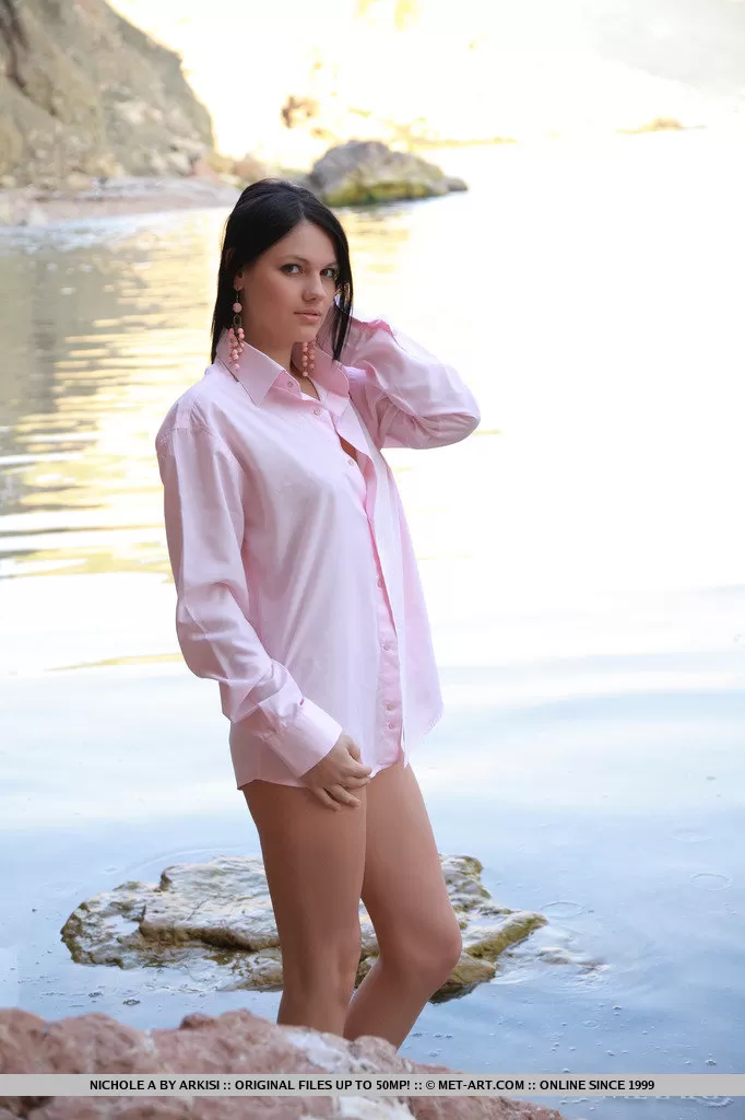 Красивая русская девушка Николь А позирует обнаженной на прибрежных валунах