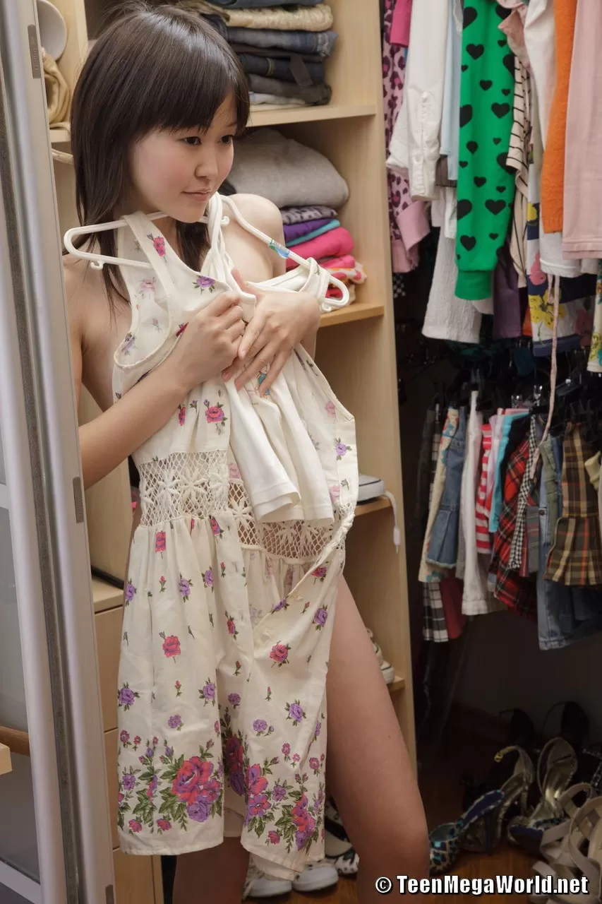 Крошечная азиатка Ксу переодевается в школьную одежду перед мастурбацией