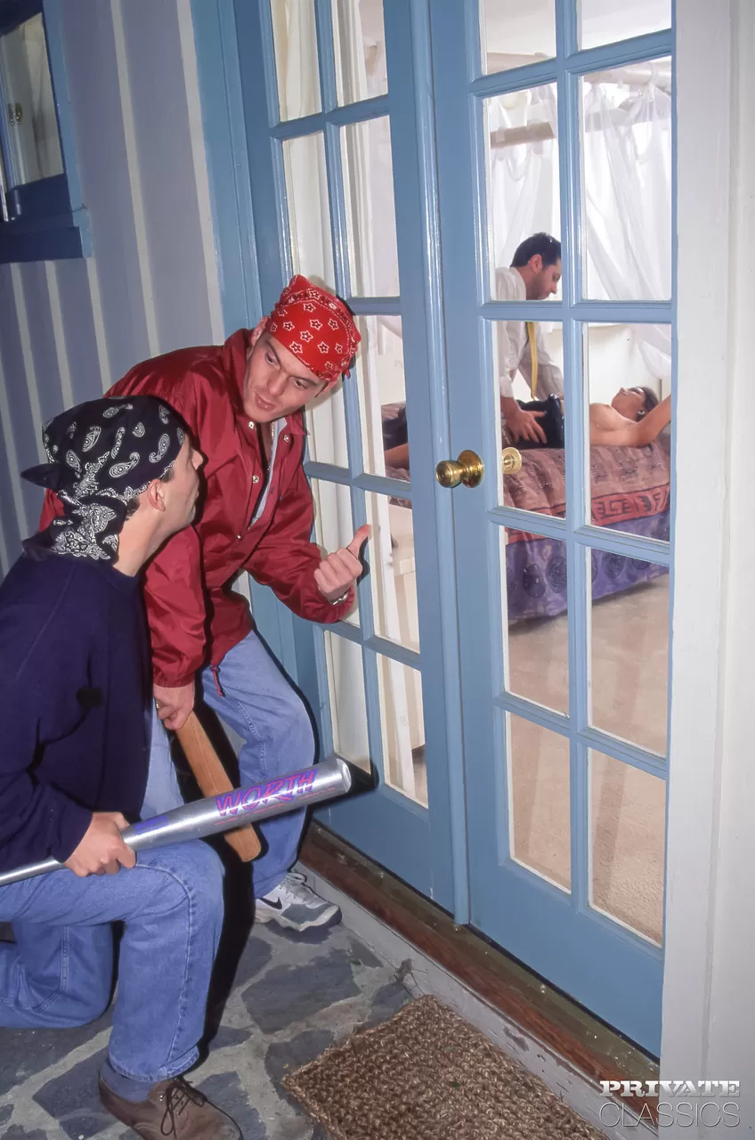 Милф-брюнетка София Феррари трахается со своим мужем и парой воров