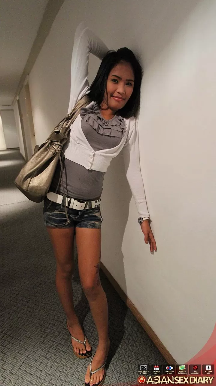 Миниатюрная азиатка показывает свою киску крупным планом и стоя голой