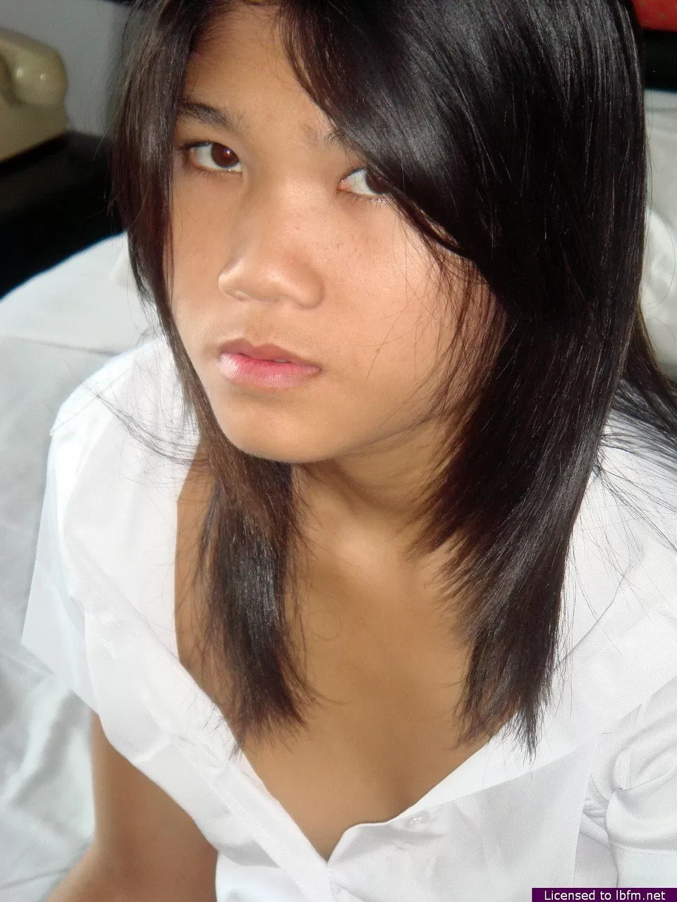 Молодая азиатка Эппл освобождает свою лысую киску от белых хлопчатобумажных трусиков