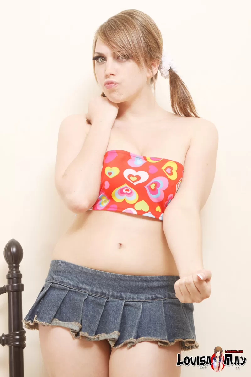 Молодая девушка-одиночка Луиза Мэй обнажает свои большие натуральные сиськи на своей кровати