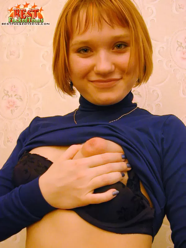 Молодая рыжеволосая девушка растягивает свою киску крупным планом с накрашенными ногтями