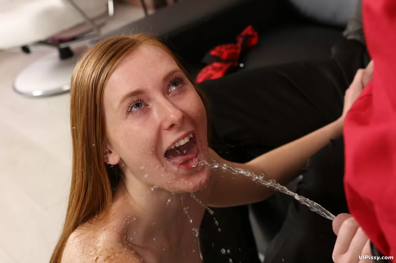 Молодая рыжеволосая Линда Свит играет в писающие игры и получает двойное проникновение в развратном сексе втроем