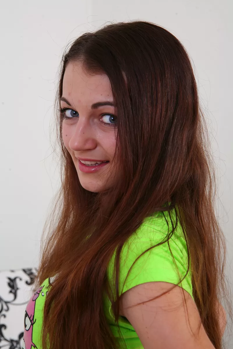Молодая русская девушка лижет фаллоимитатор после того, как полностью разделась