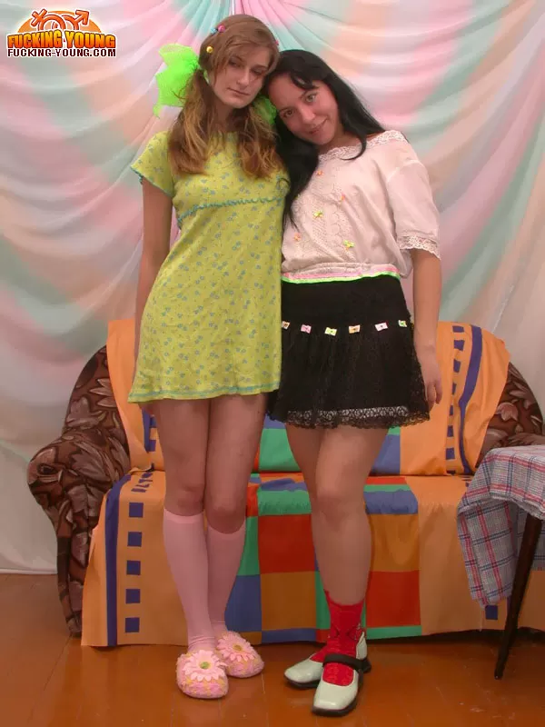 Молодые любители делятся двойным дилдо во время лесбийского секса