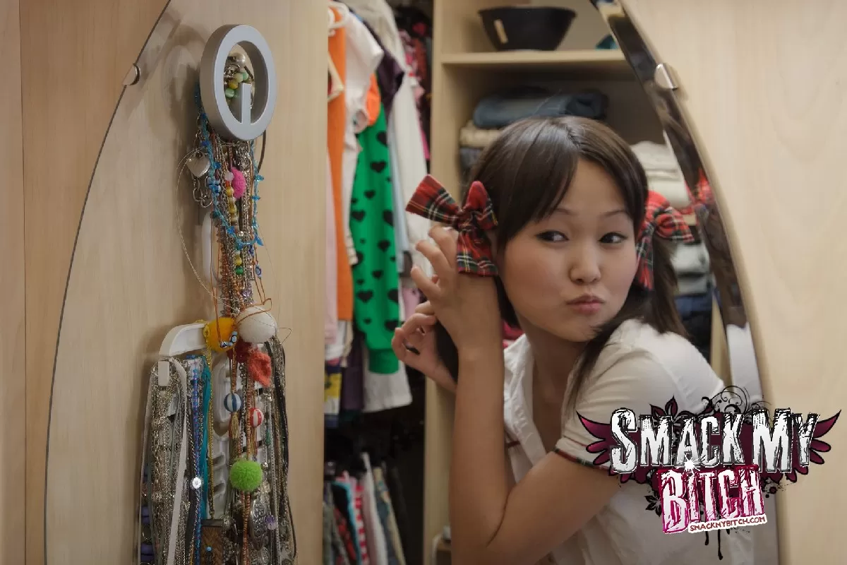 Молодо выглядящая азиатская студентка Алена раздевается догола, заплетая косички