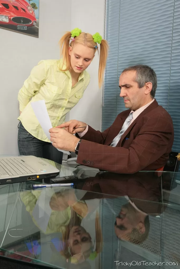 Молодо выглядящая девушка получает сперму на язык после секса со своим старым учителем