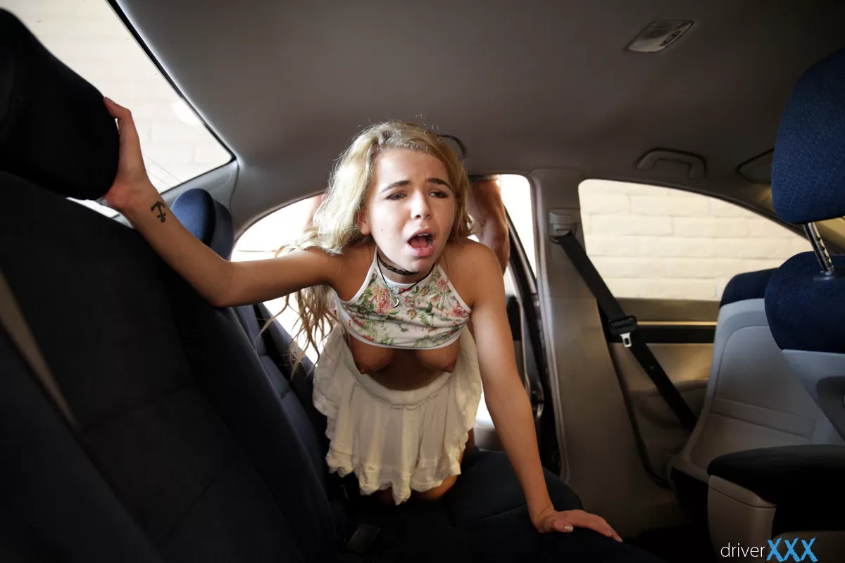 Молодую блондинку Алину Уэст жестко трахают сзади в машине ее парня
