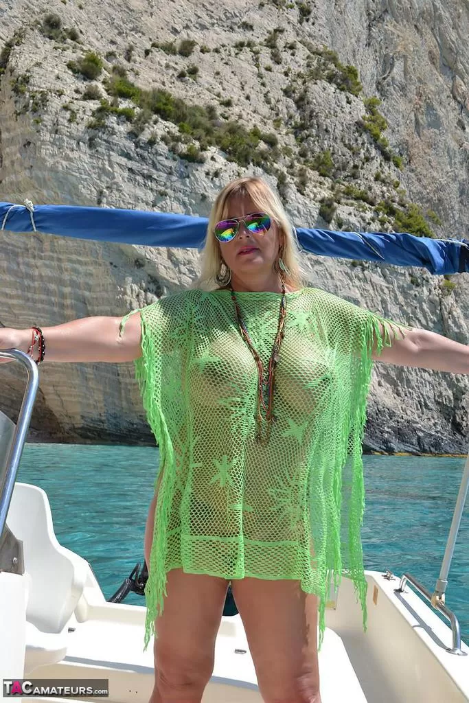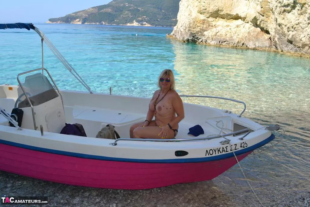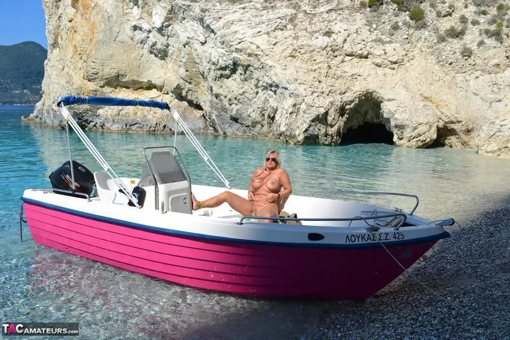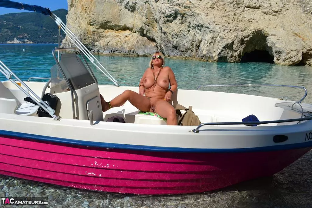 Мускулистая большая обнаженная Крисси голышом управляет своей лодкой, чтобы позагорать на своих круглых пухлых сиськах