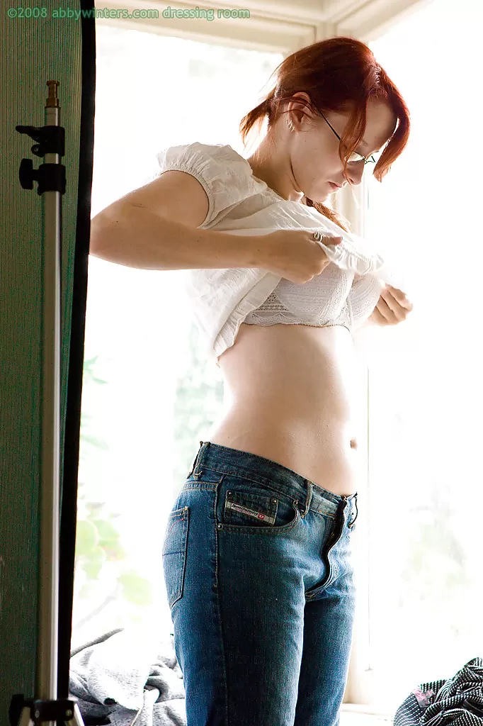 Неопытная Рен одевается после того, как позирует своей волосатой киской в обнаженном виде