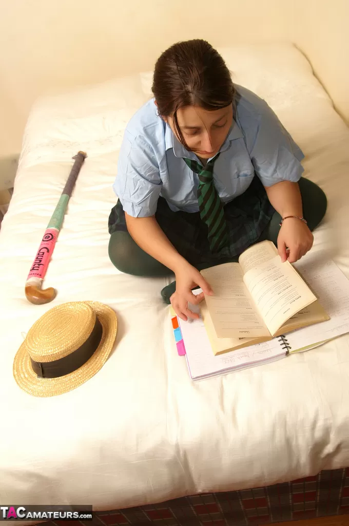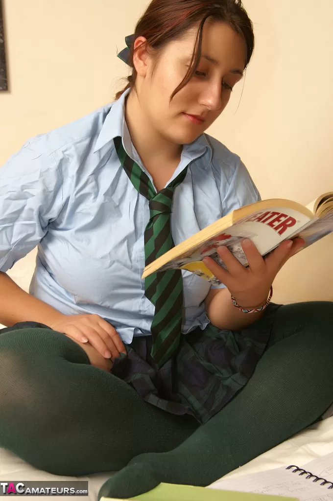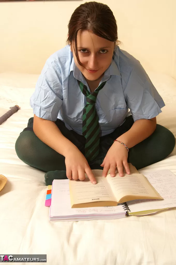 Непослушная школьница Кимберли Скотт читает непристойности и мастурбирует свою молоденькую киску