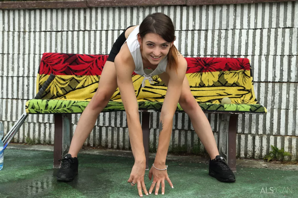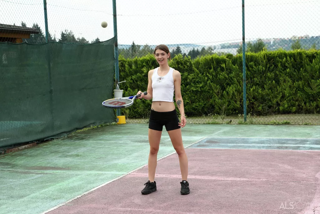Подтянутая любительница Тера Линк вставляет банан в свою лысую щель после игры в теннис