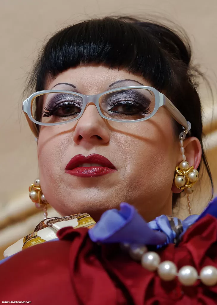 Похотливая зрелая учительница в очках обнажает свои сиськи и попку перед парнем