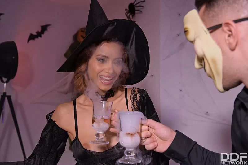 Похотливую цыпочку Веронику Лил трахают в жопу после того, как она угостила мужчину ведьминым варевом