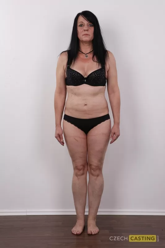 Пожилая брюнетка Ева снимает с себя одежду и ботинки, чтобы полностью раздеться