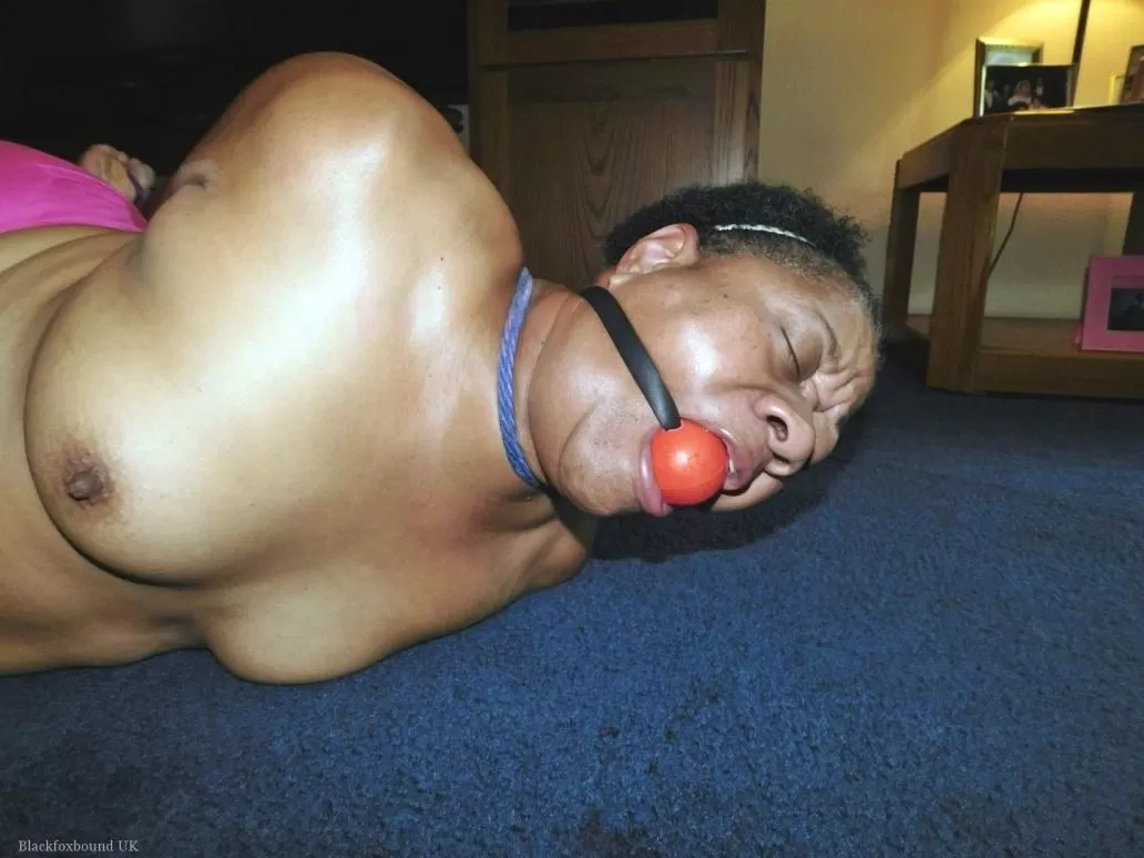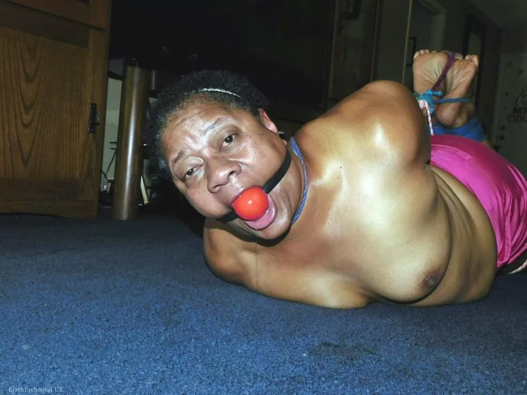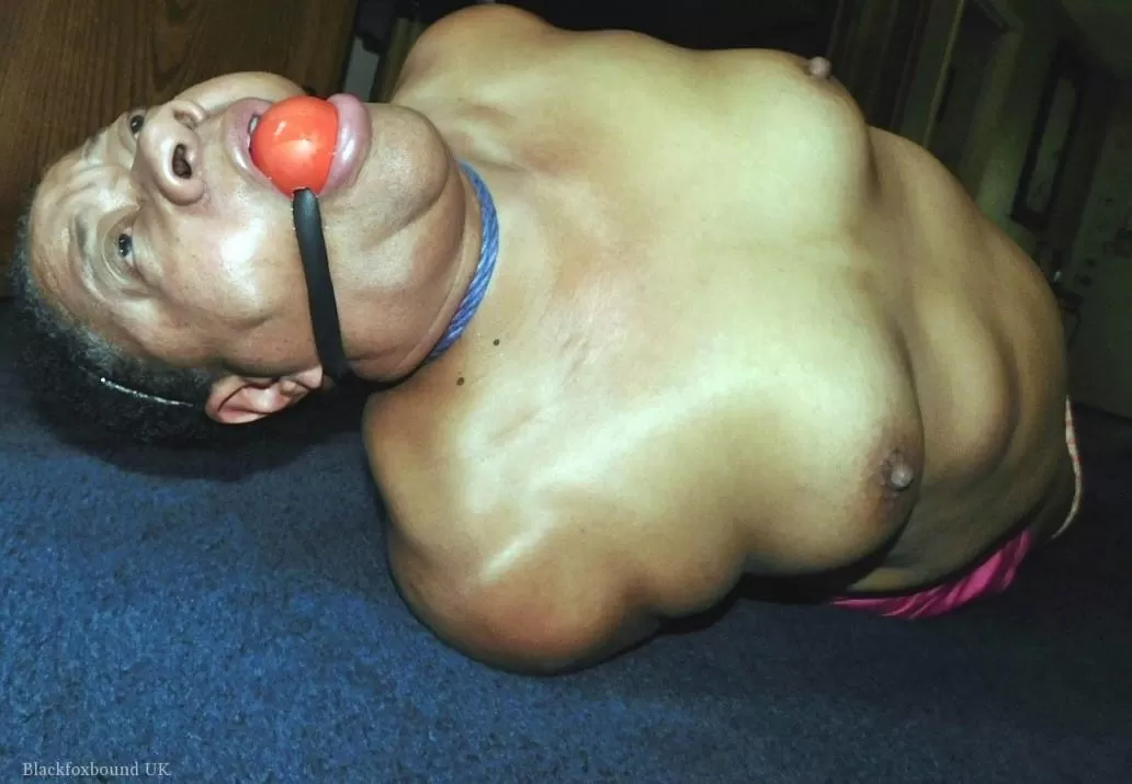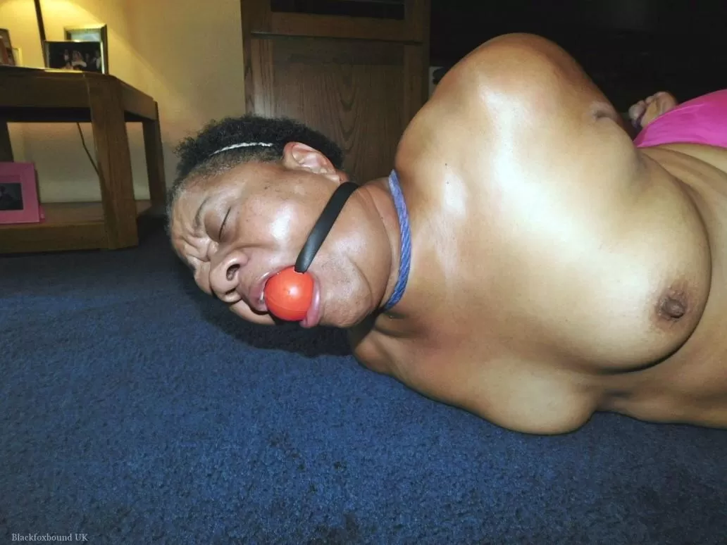 Полная негритянка Трикси борется с кляпом во рту, пока ее связывают