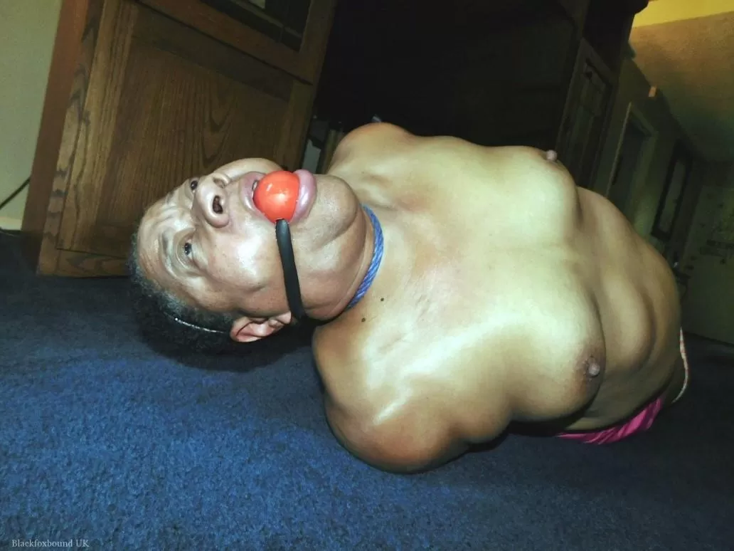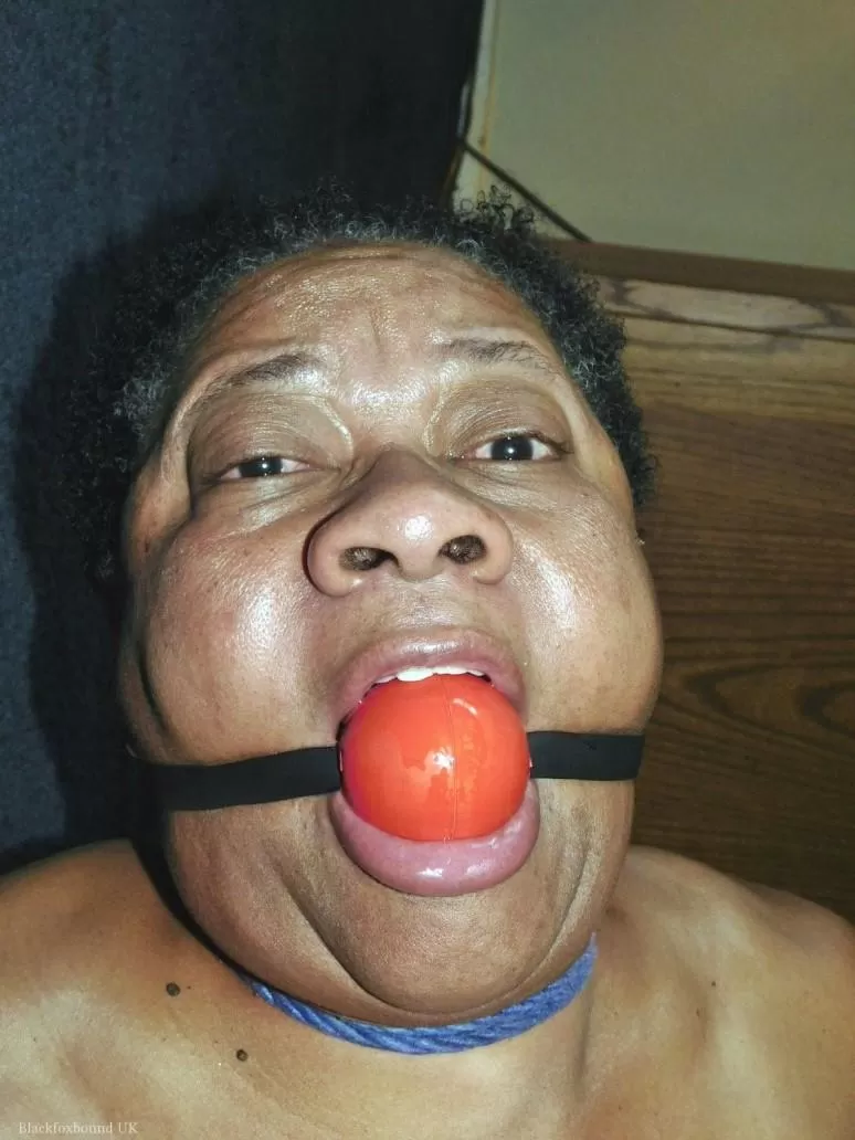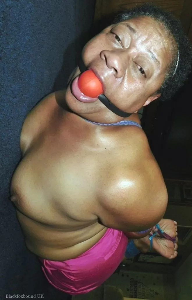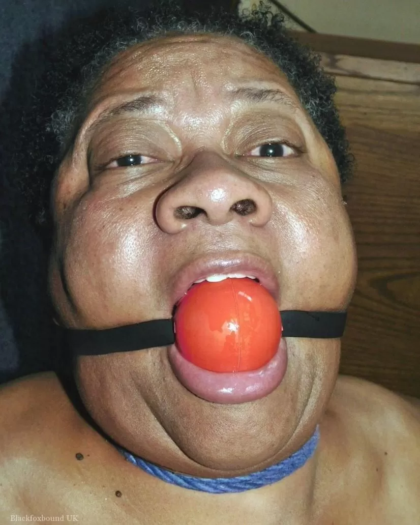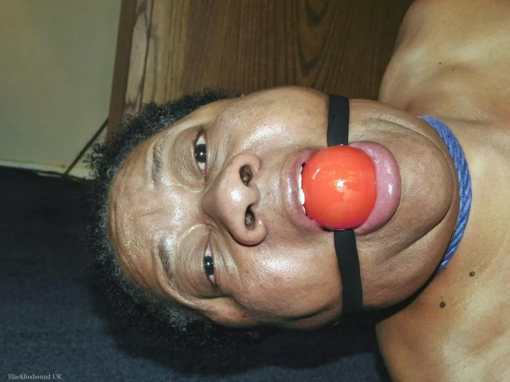 Полная негритянка Трикси борется с кляпом во рту, пока ее связывают